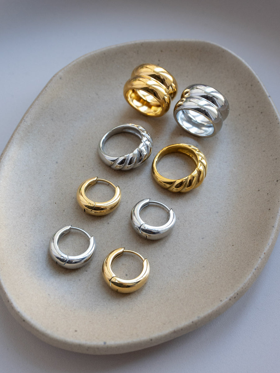 - Huggie: 18K Gold-plated over copper