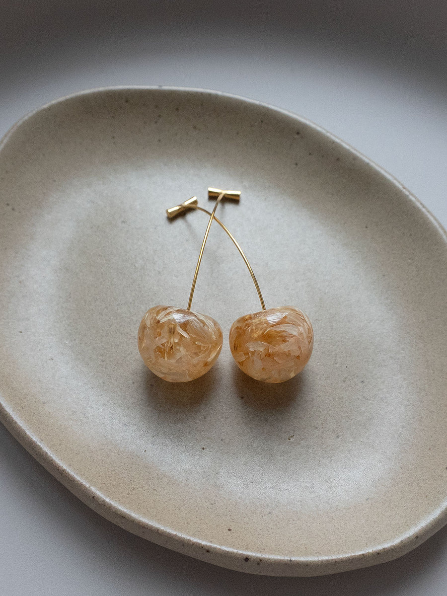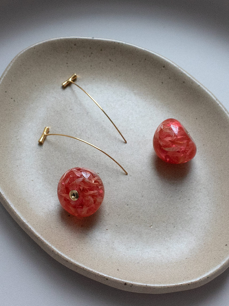 Cute pink berry glass charm earrings for an added touch of playfulness.