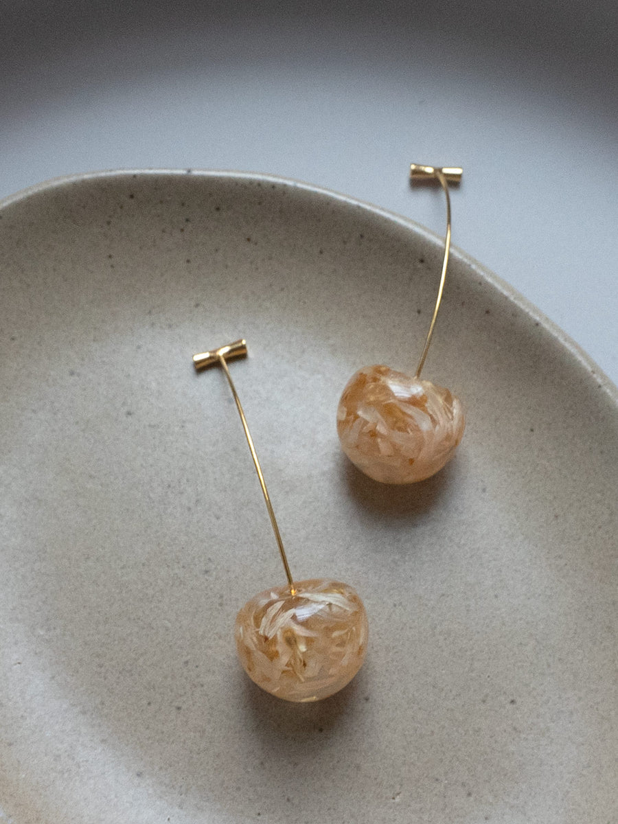 - Flower resin charm: 18K Gold plating over copper, resin, dried flowers