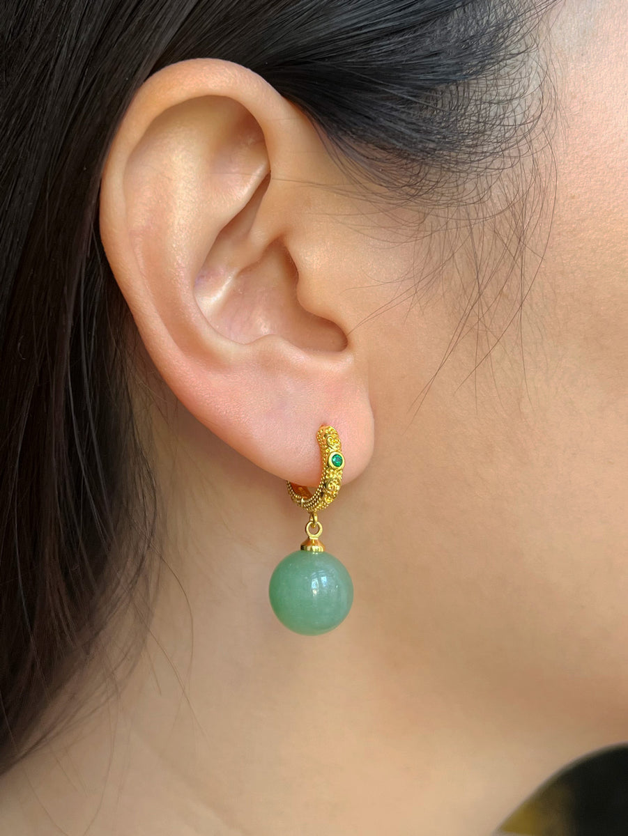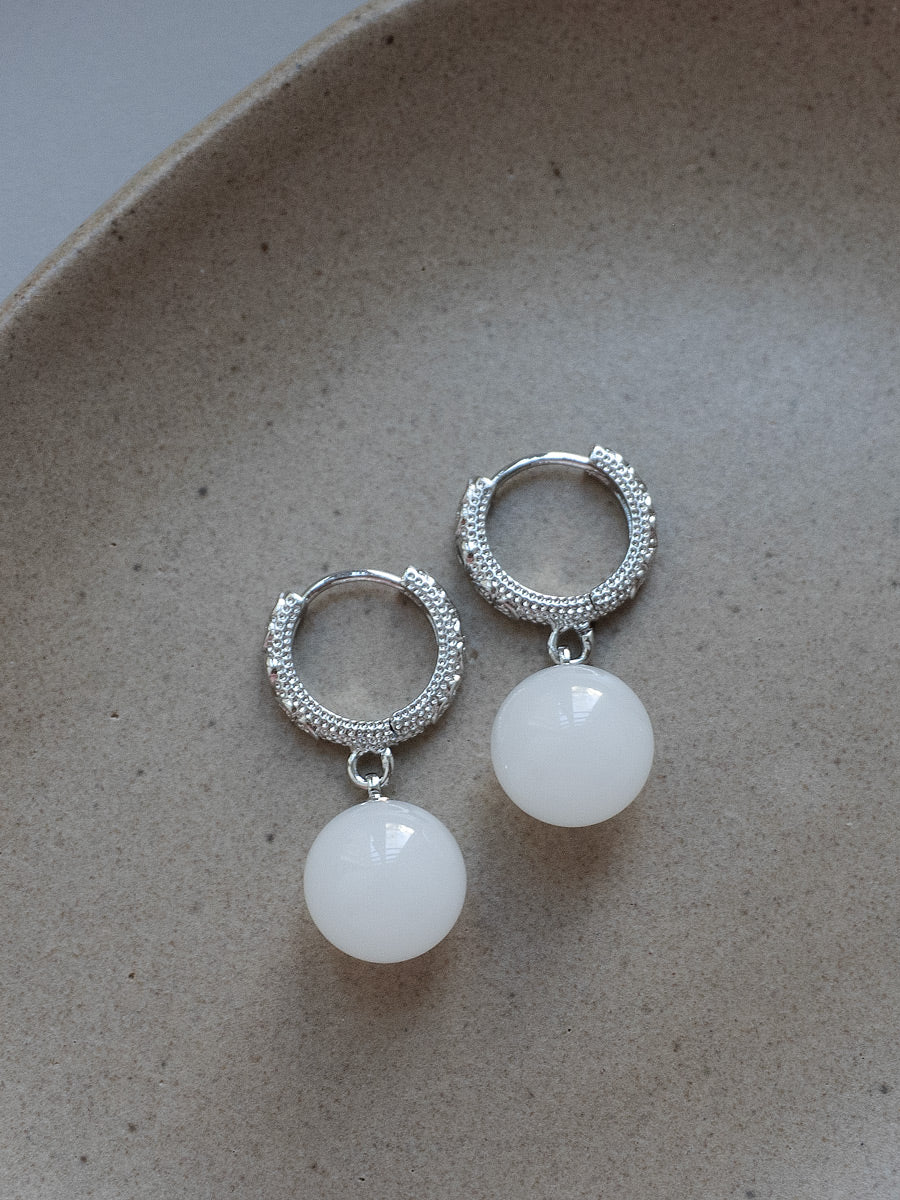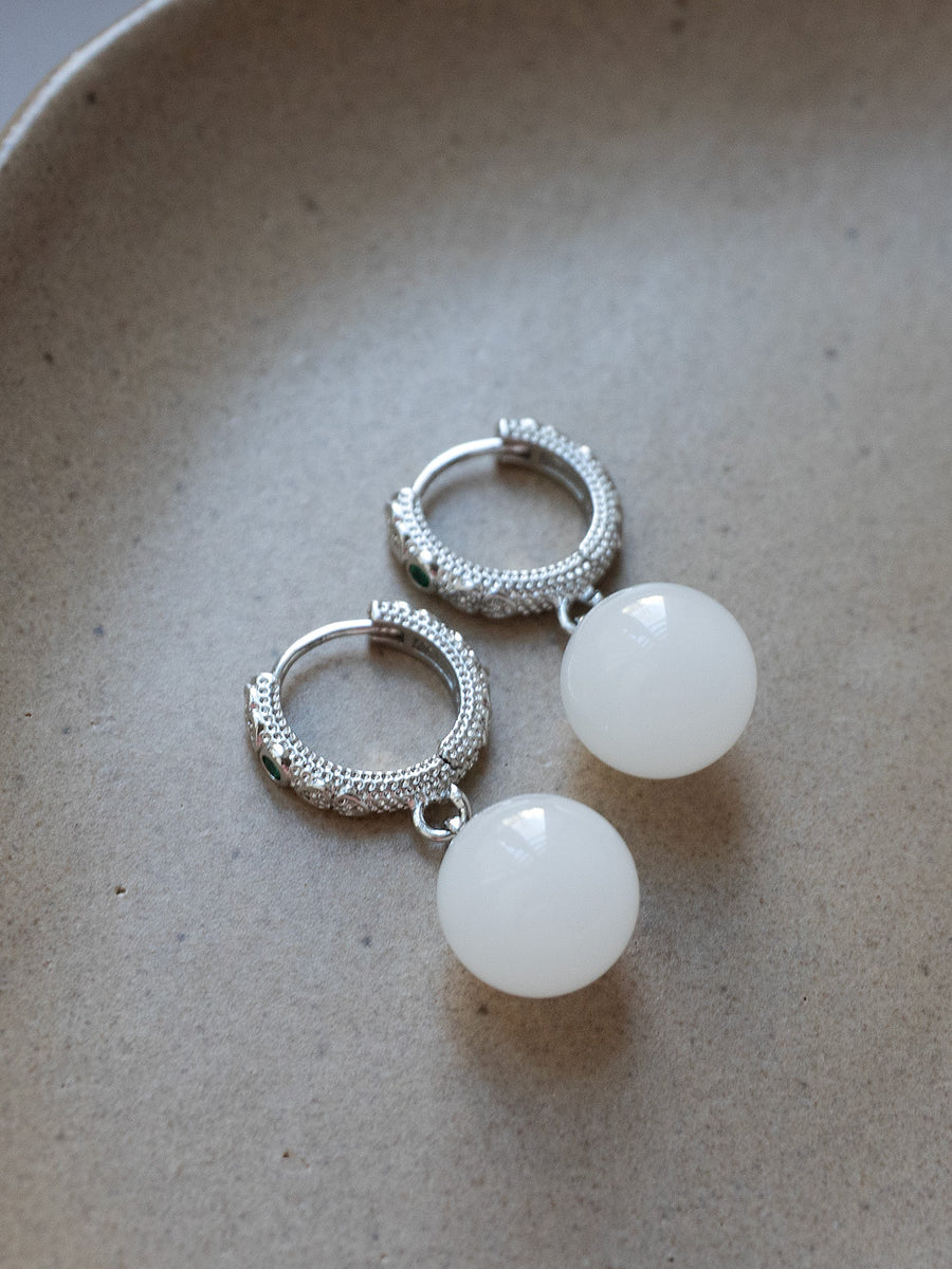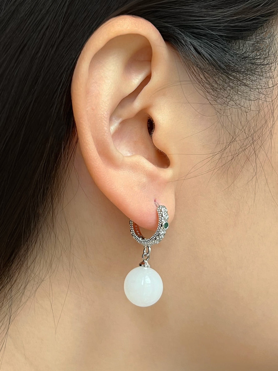 Elegant jade ball earrings, crafted in S925 silver. Also comes in Silver.