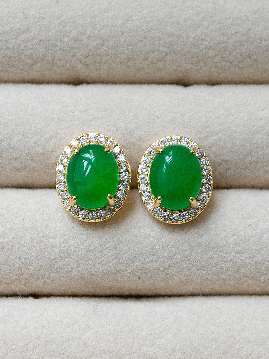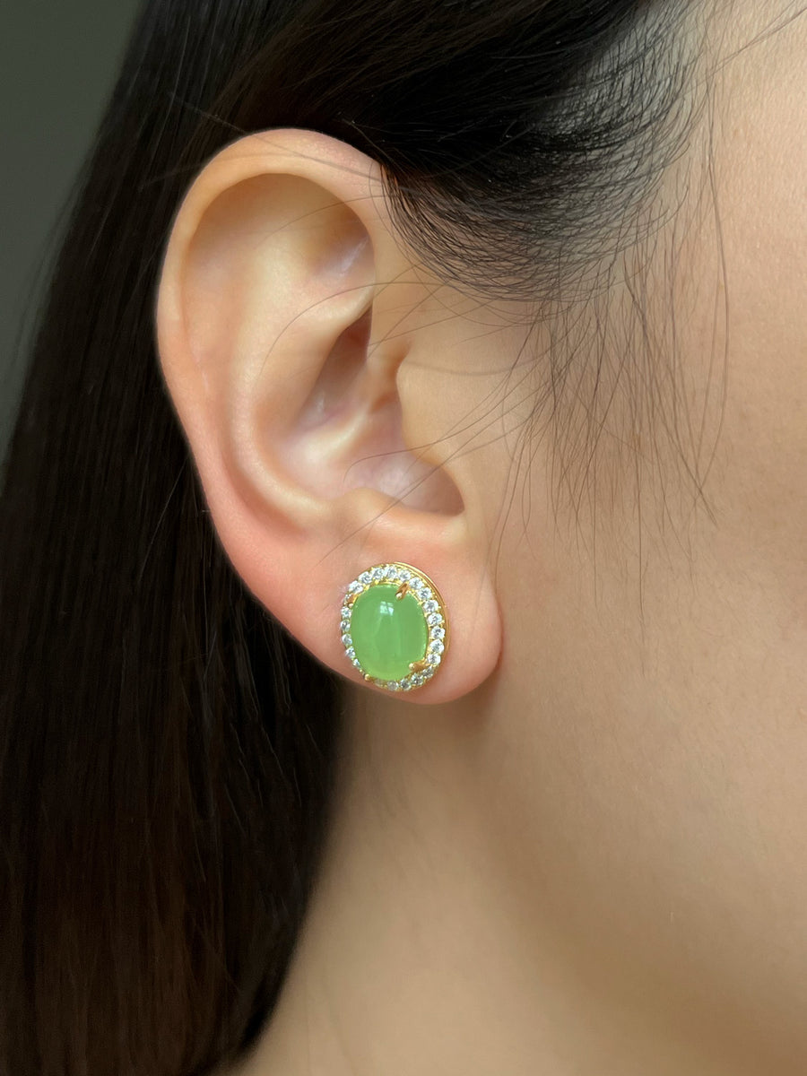 - 14/18K Gold-plating over 925 Sterling Silver, Light Green Jade