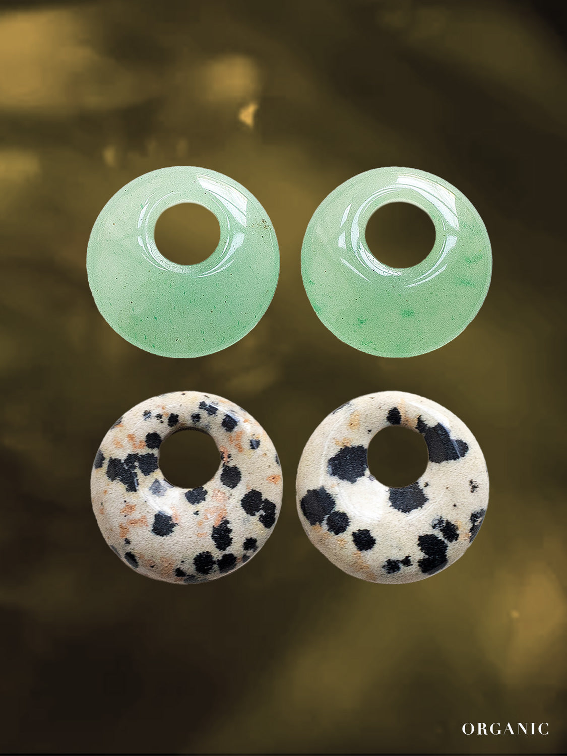 You will receive: 1 pair of Gold and Silver Hoops (4mm), 2 pairs of V2 stones - Polka Dot V2, Green Aventurine V2