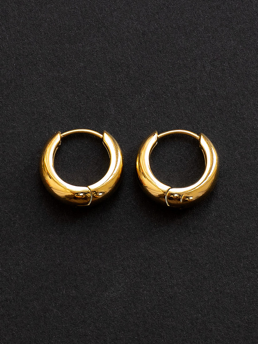Timeless, chunky gold hoops. Delightfully lightweight for everyday wear.