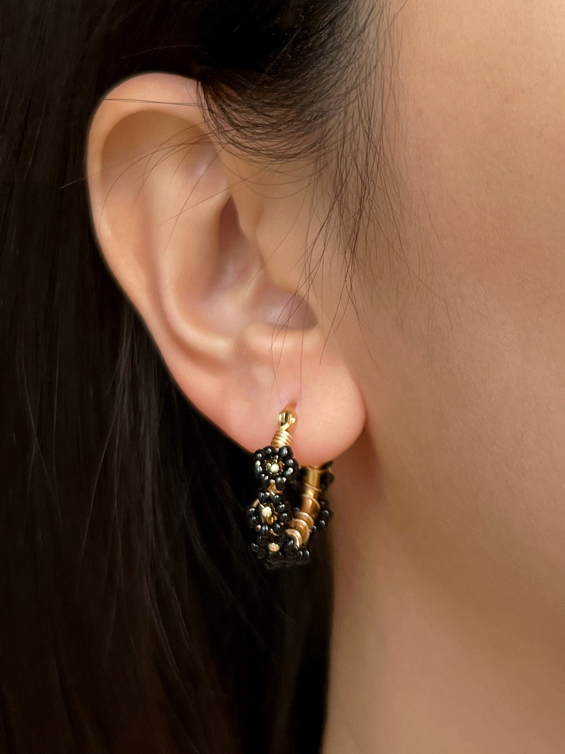 Beaded Flower Hoops - Black