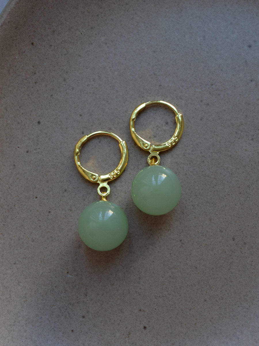 Jade Ball Huggies, S925 - Gold, Light Green