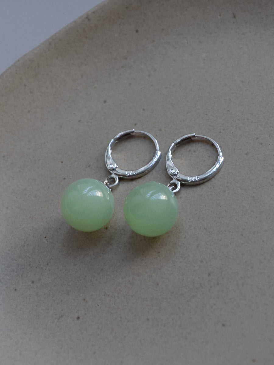 Jade Ball Huggies, S925 - Silver, Light Green