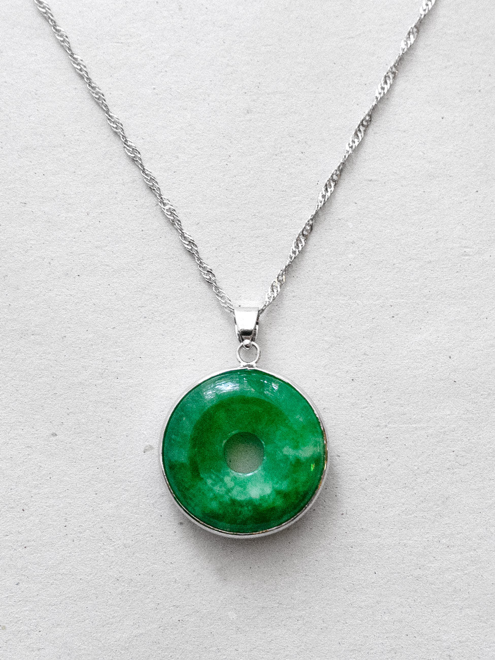 Molten-edged Jade Donut Necklace - Silver