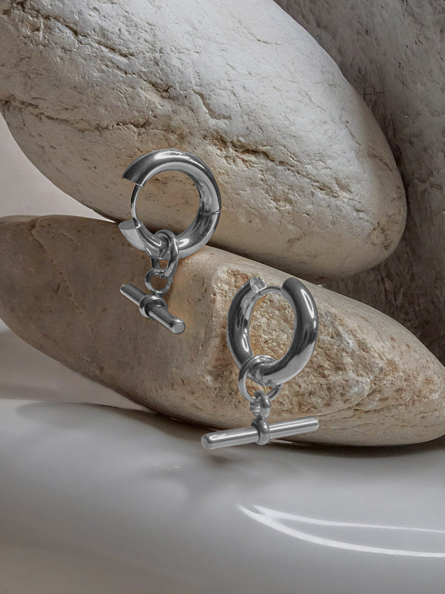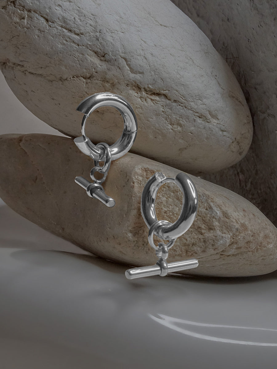 GABI STUDIO / Beautifully chic thick hoops with semi precious stone donuts.