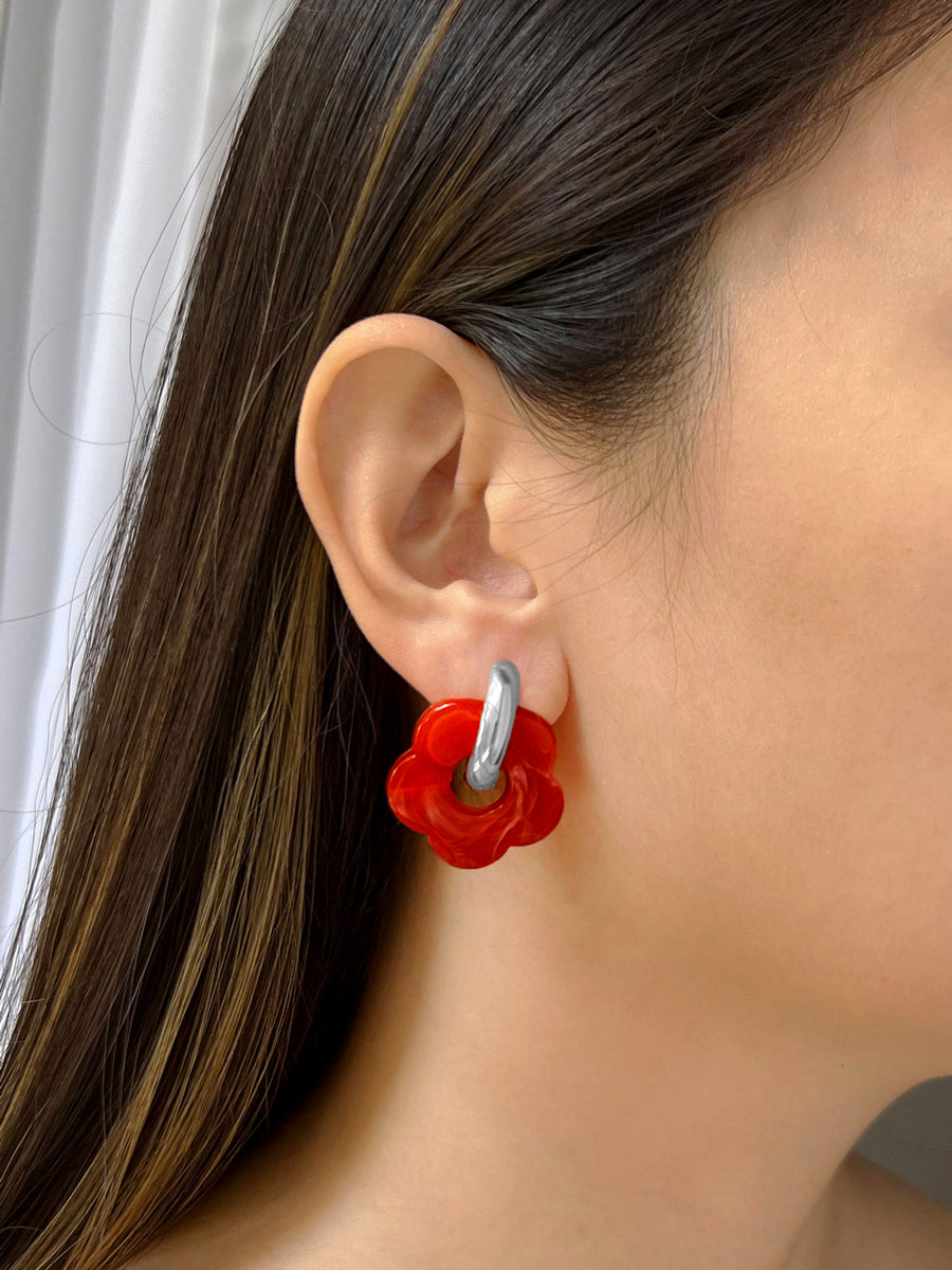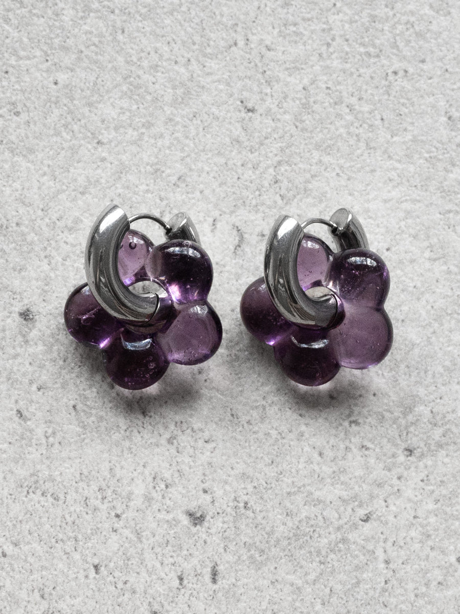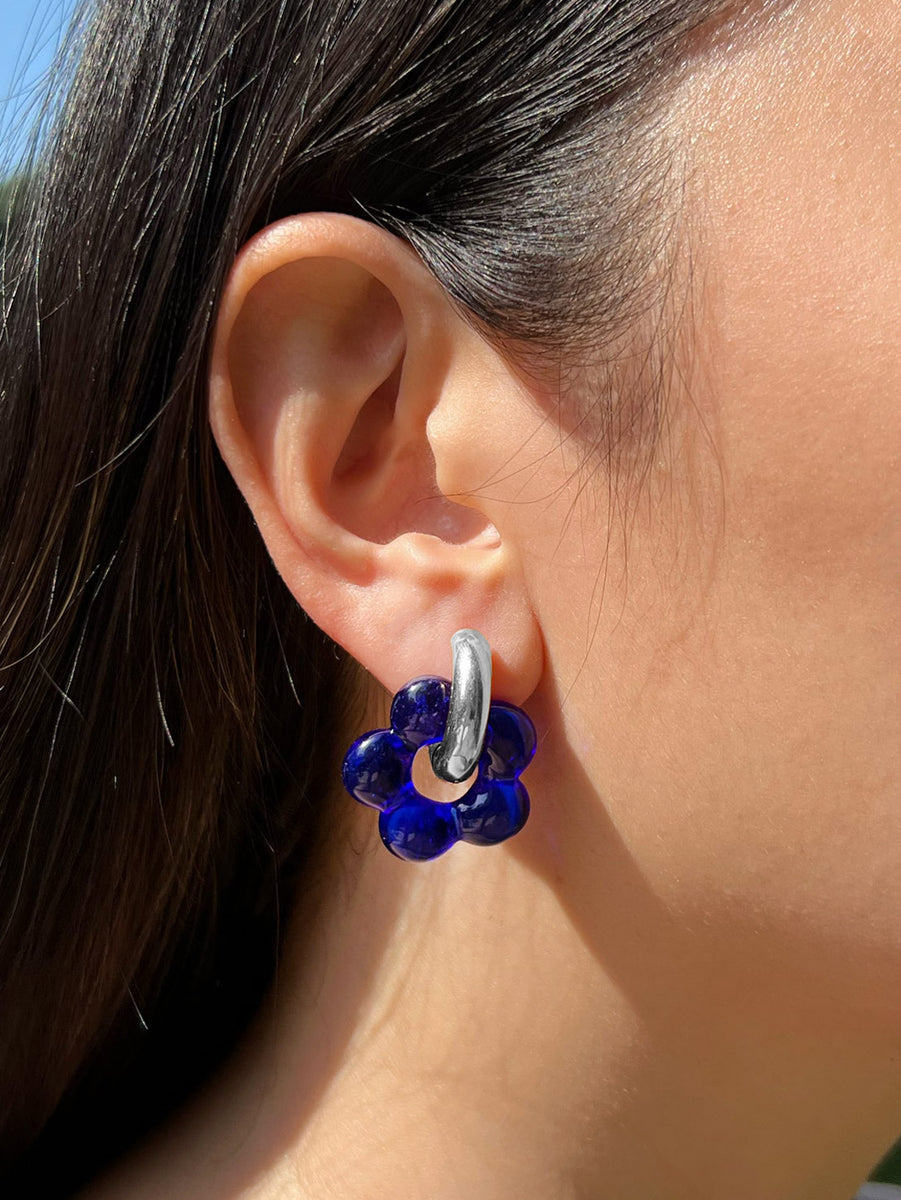Embrace the perfect blend of elegance and charm with our chunky hoop earrings adorned with exquisite glass flower beads.
