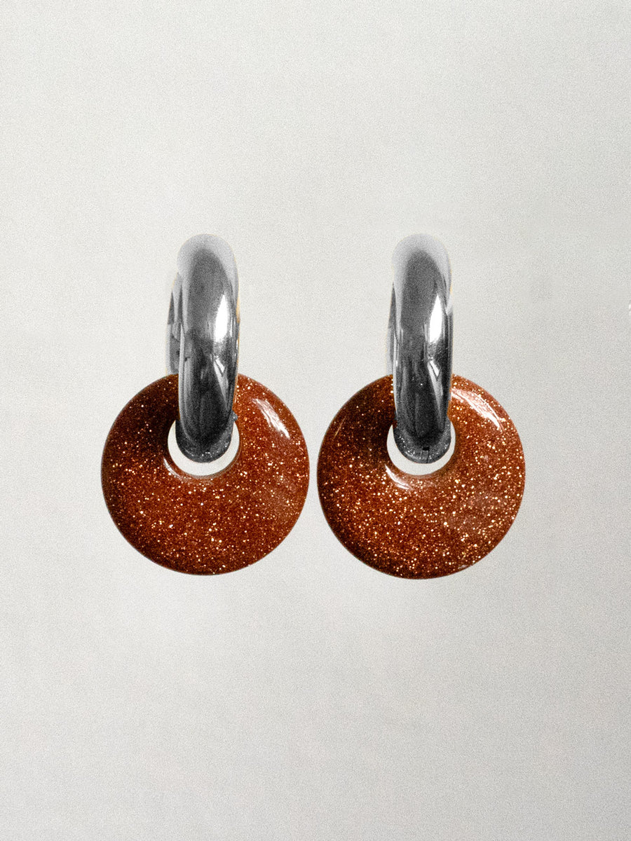GABI STUDIO / Beautifully chic thick hoops with semi precious stone donuts. Also available in its Gold version.
