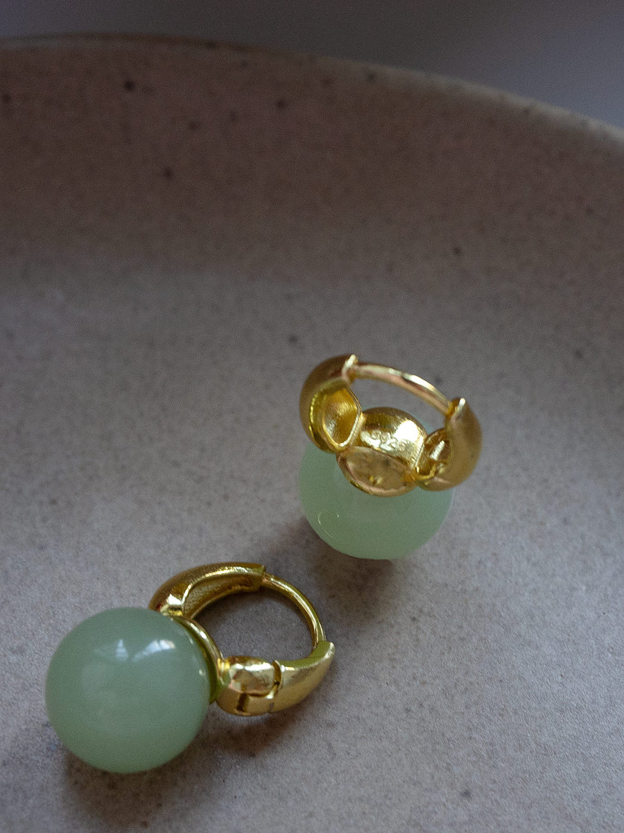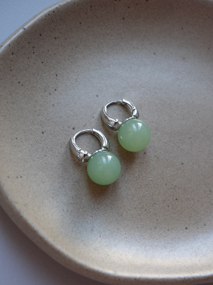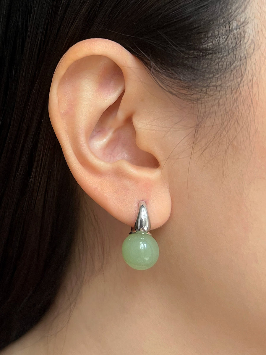 Elegant jade ball earrings, crafted in S925 silver. Also comes in Silver.