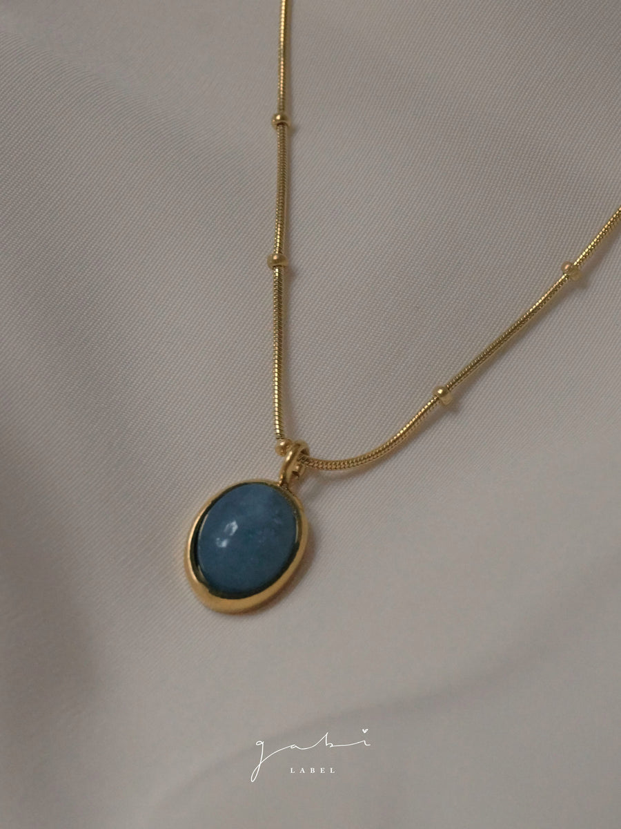 Un collier élégant avec un pendentif en pierre naturelle bleu grisâtre.