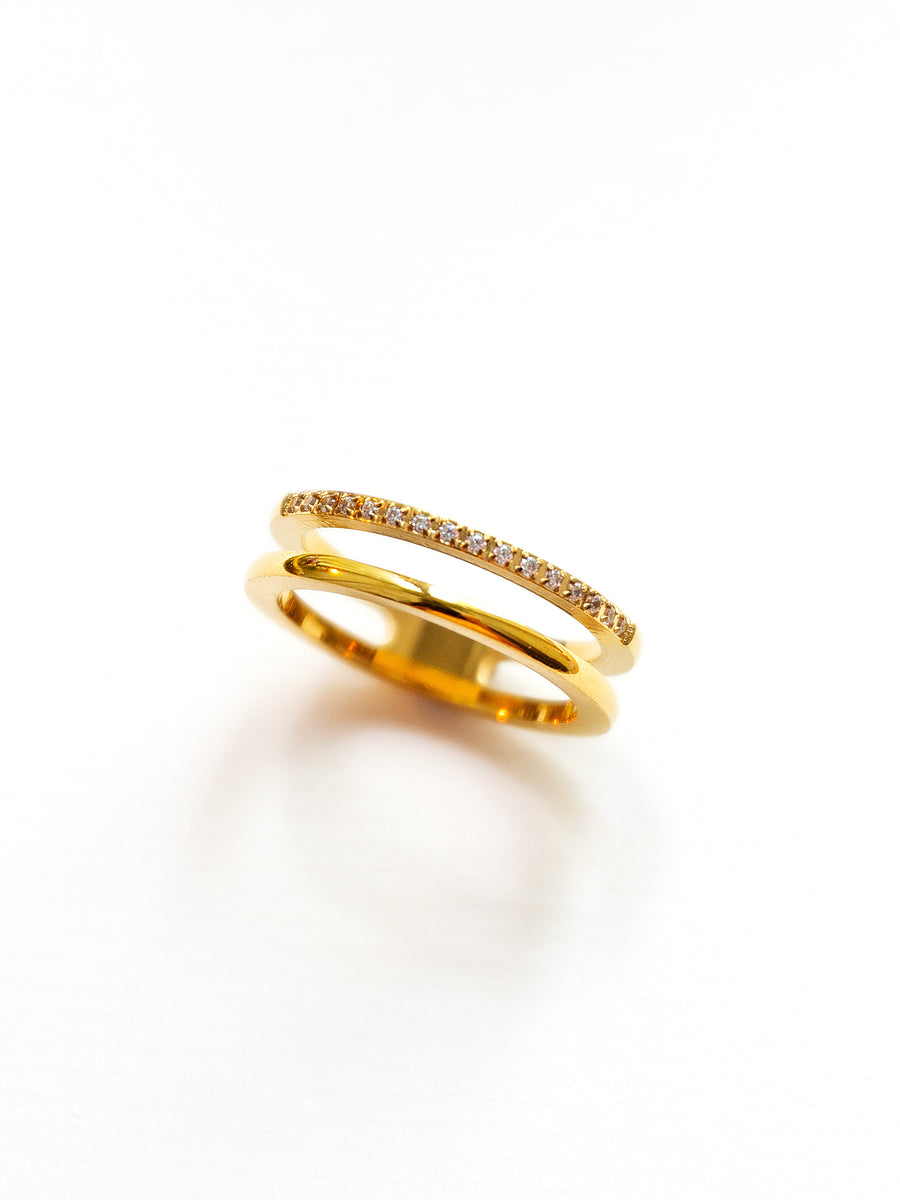 A modern ring featuring a sleek double-line design for a bold yet refined look. Crafted in durable stainless steel, it’s perfect for everyday wear or stacking with ease. Also available in Silver.