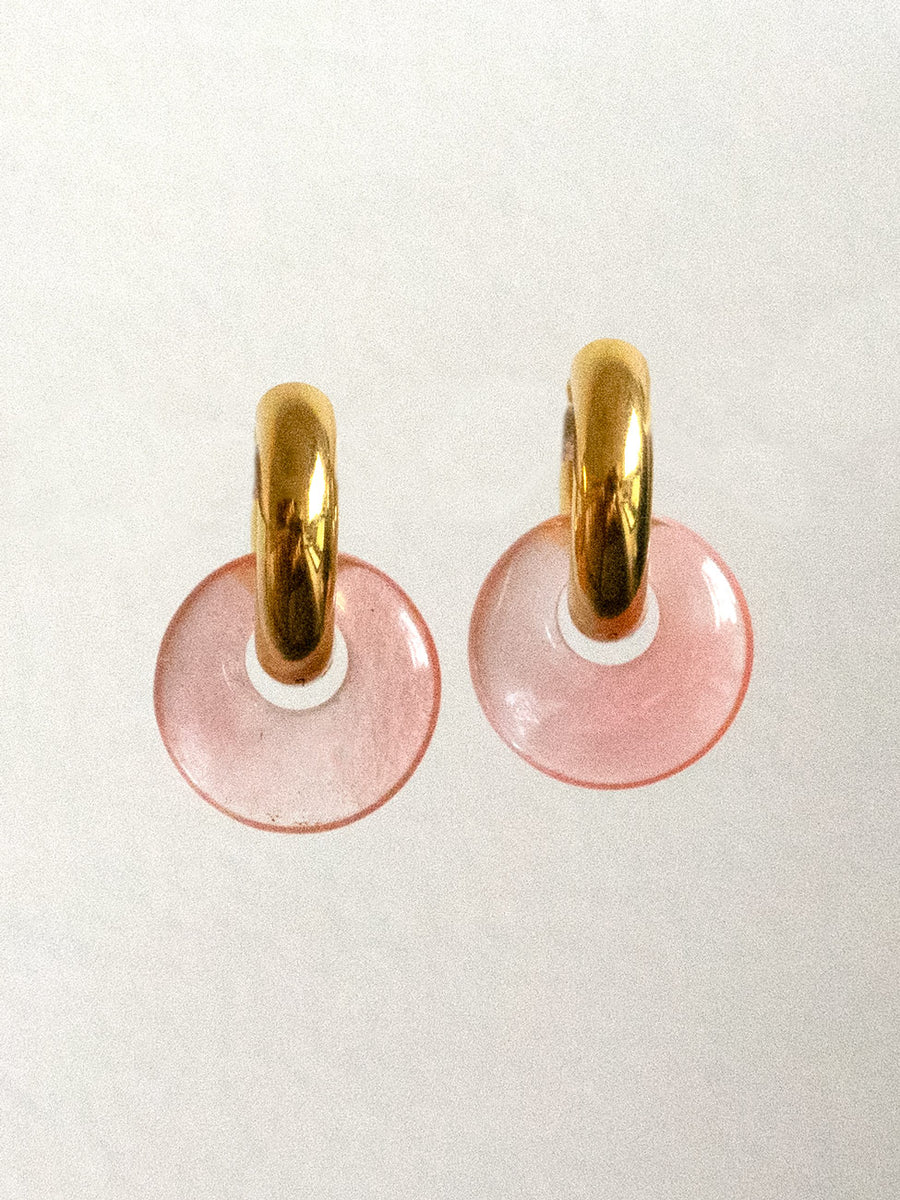 GABI STUDIO / Beautifully chic thick hoops with stone donuts. Also available in Silver.