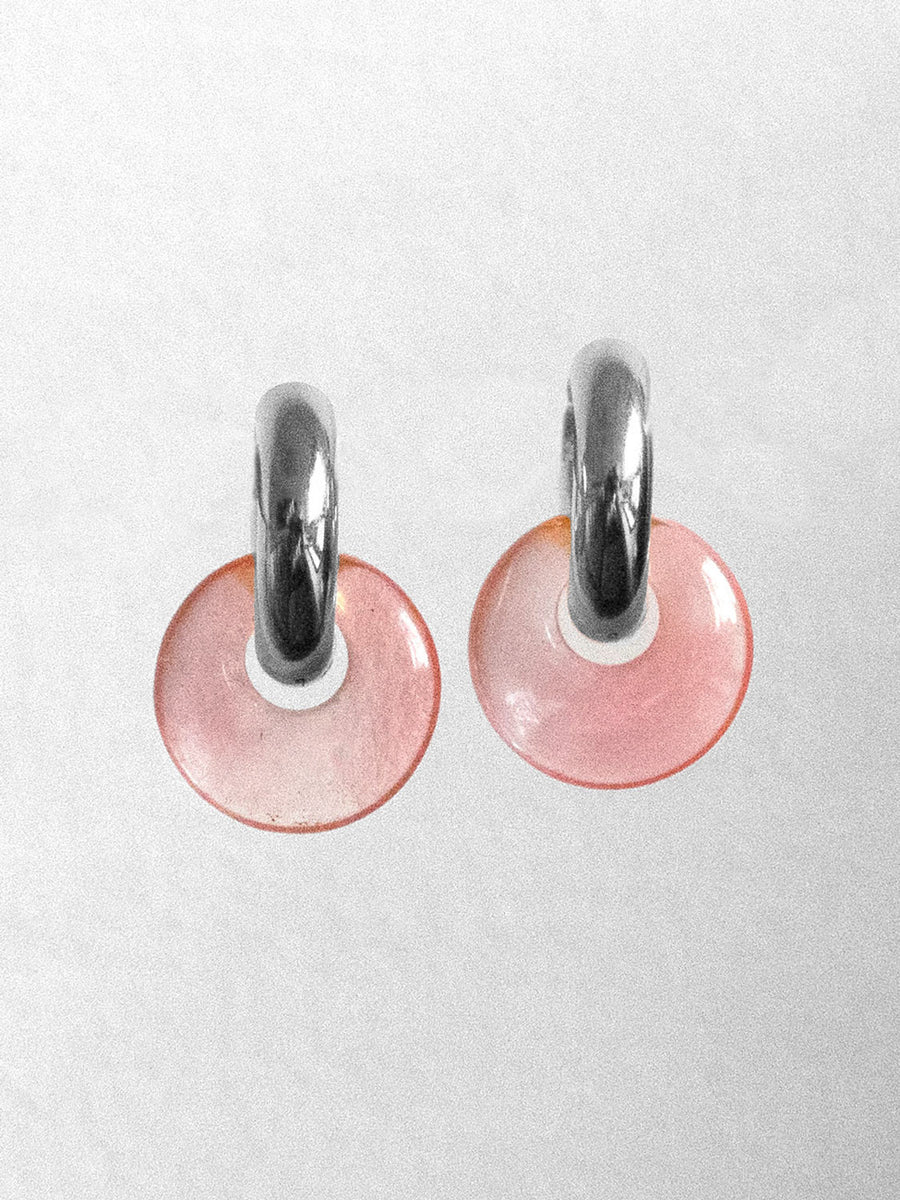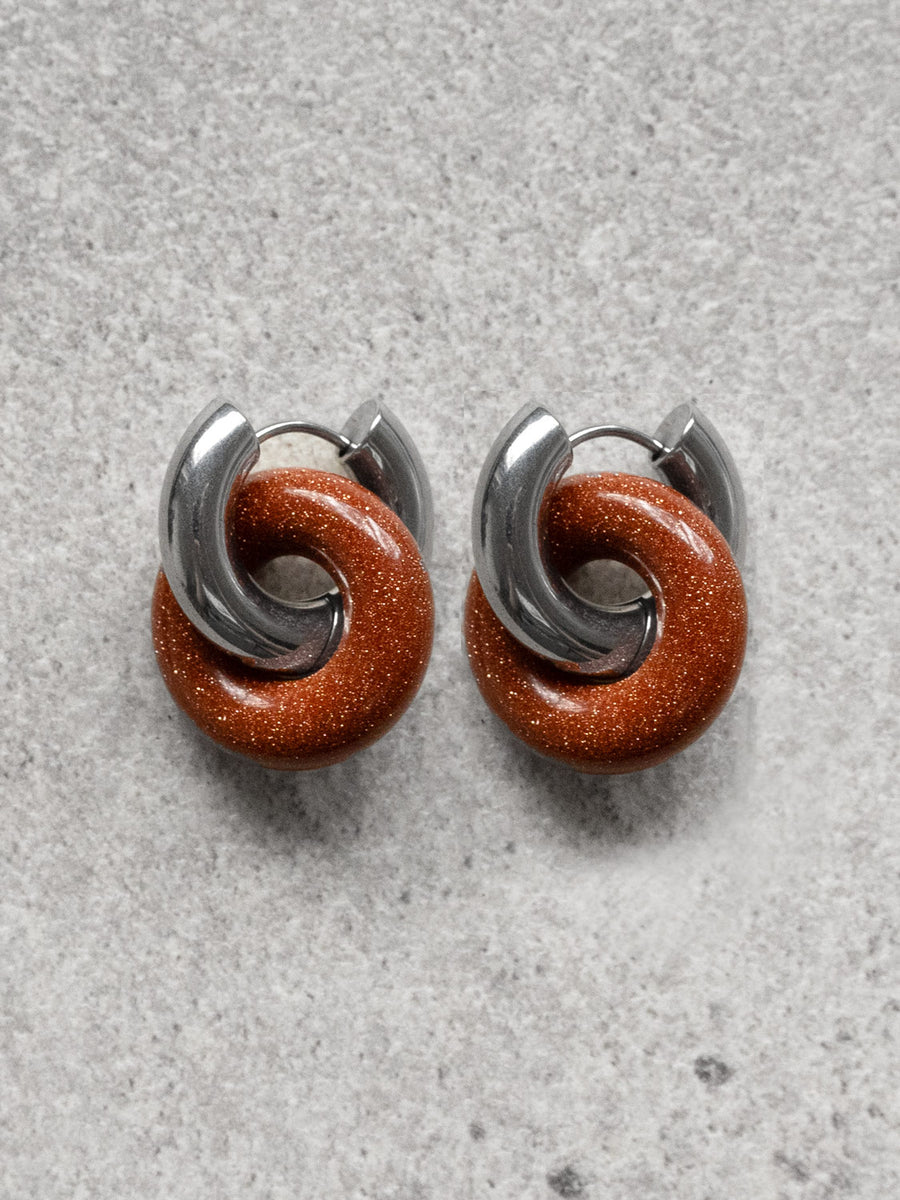 GABI STUDIO / Beautifully chic thick hoops with stone donuts. Also available in Gold.