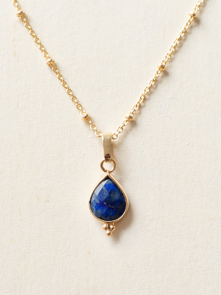 Spiritborn necklace featuring a deep blue lapis lazuli, a talisman of wisdom, intuition, and serene power. Shop its matching Spiritborn Hoops here.