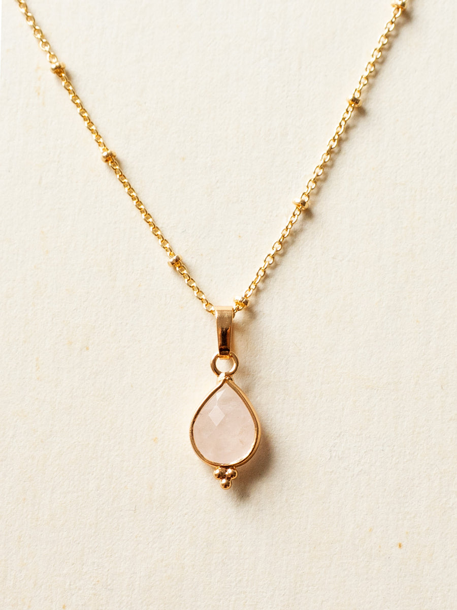 Spiritborn necklace featuring a soft rose quartz, a symbol of love, compassion, and gentle heart energy. Shop its matching Spiritborn Hoops here.
