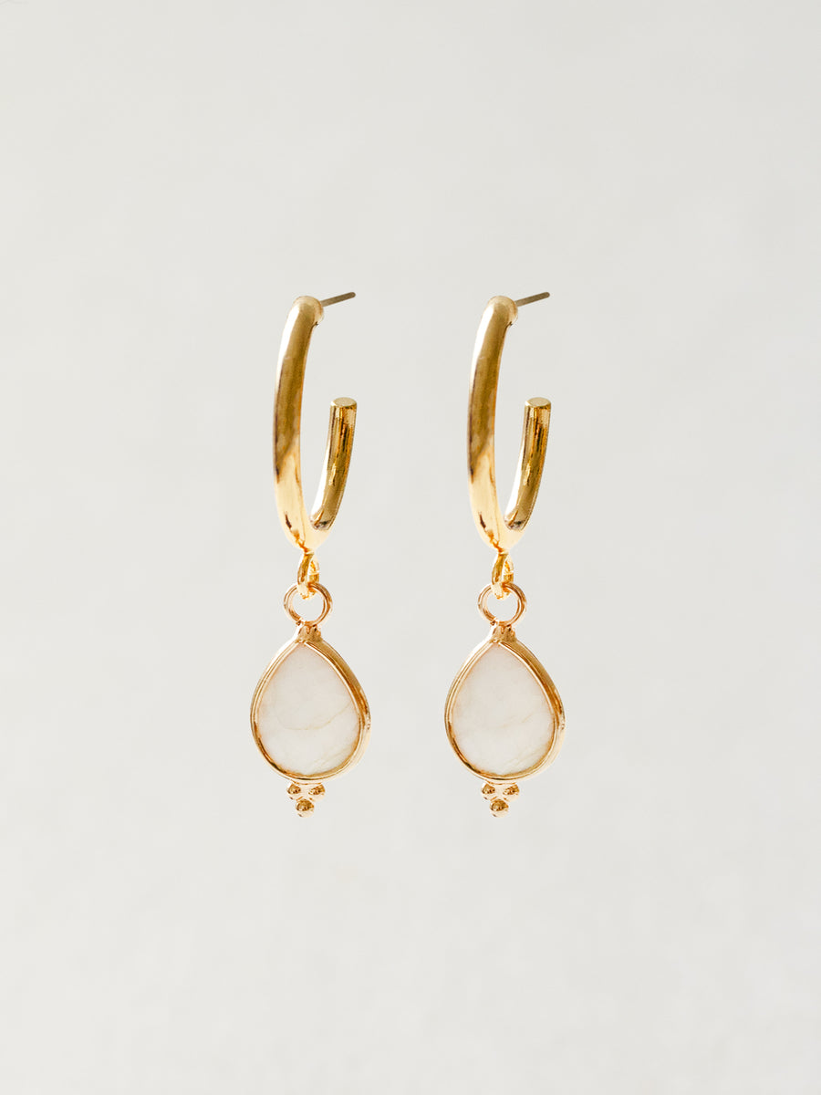 Our Spiritborn Hoops are set with teardrop-carved natural stones, catching light with a quiet, multi-faceted glow. Shop its matching Spiritborn Necklace here.