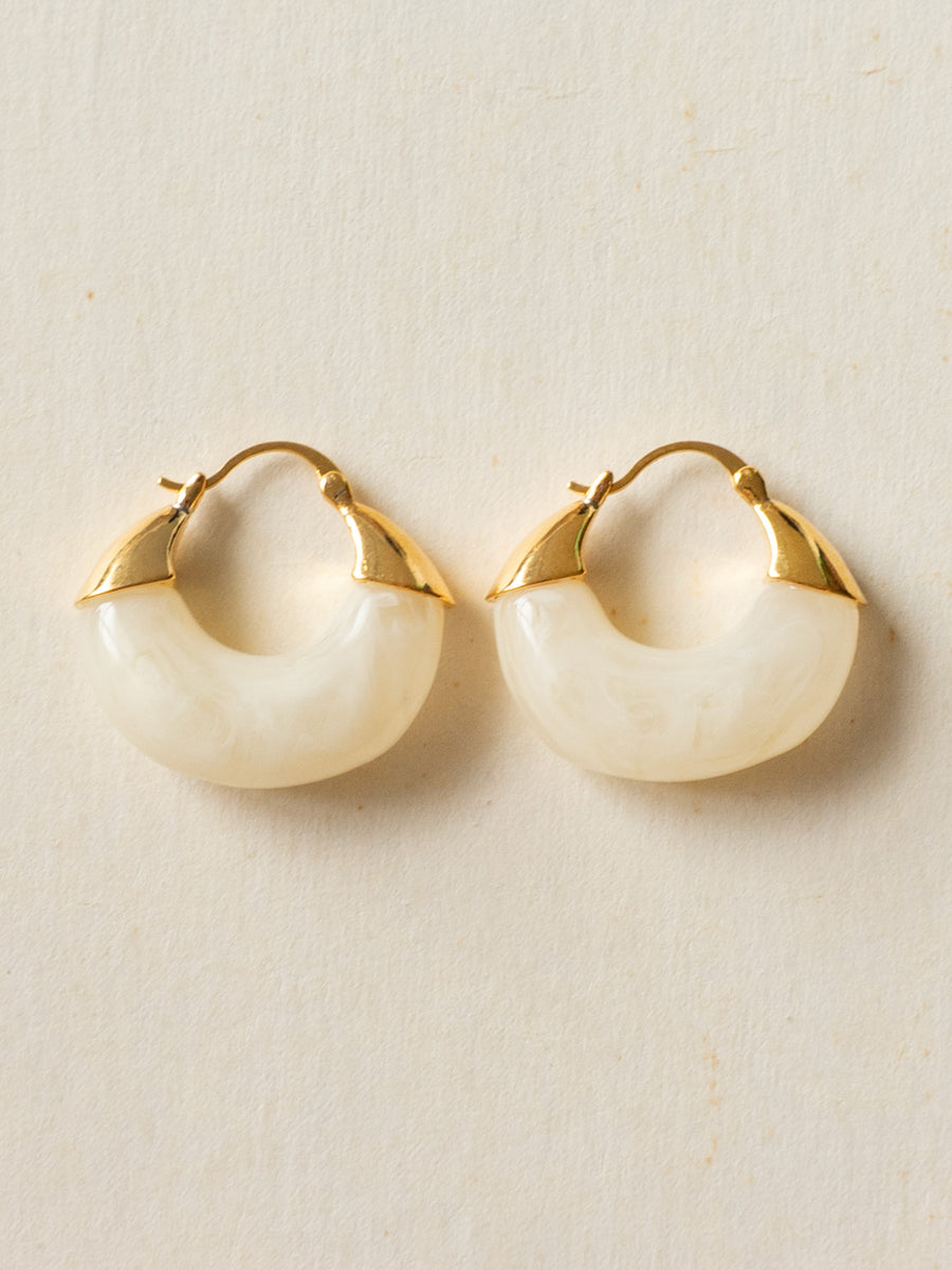 Boat-shaped hoops with a contemporary charm and features organic resin patterning.
