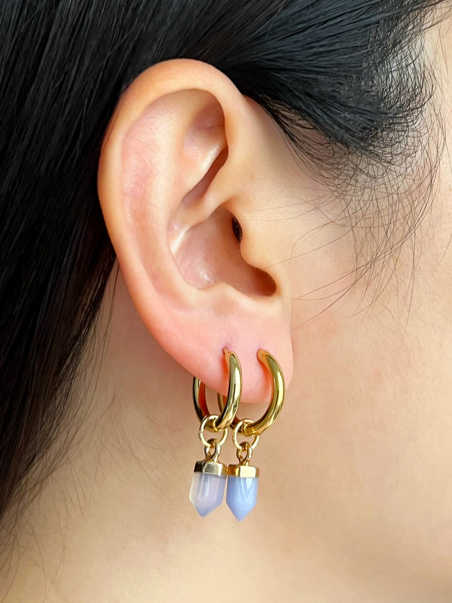 These natural stone crystal hoops feature Tiger Eye, the stone of courage and clarity.