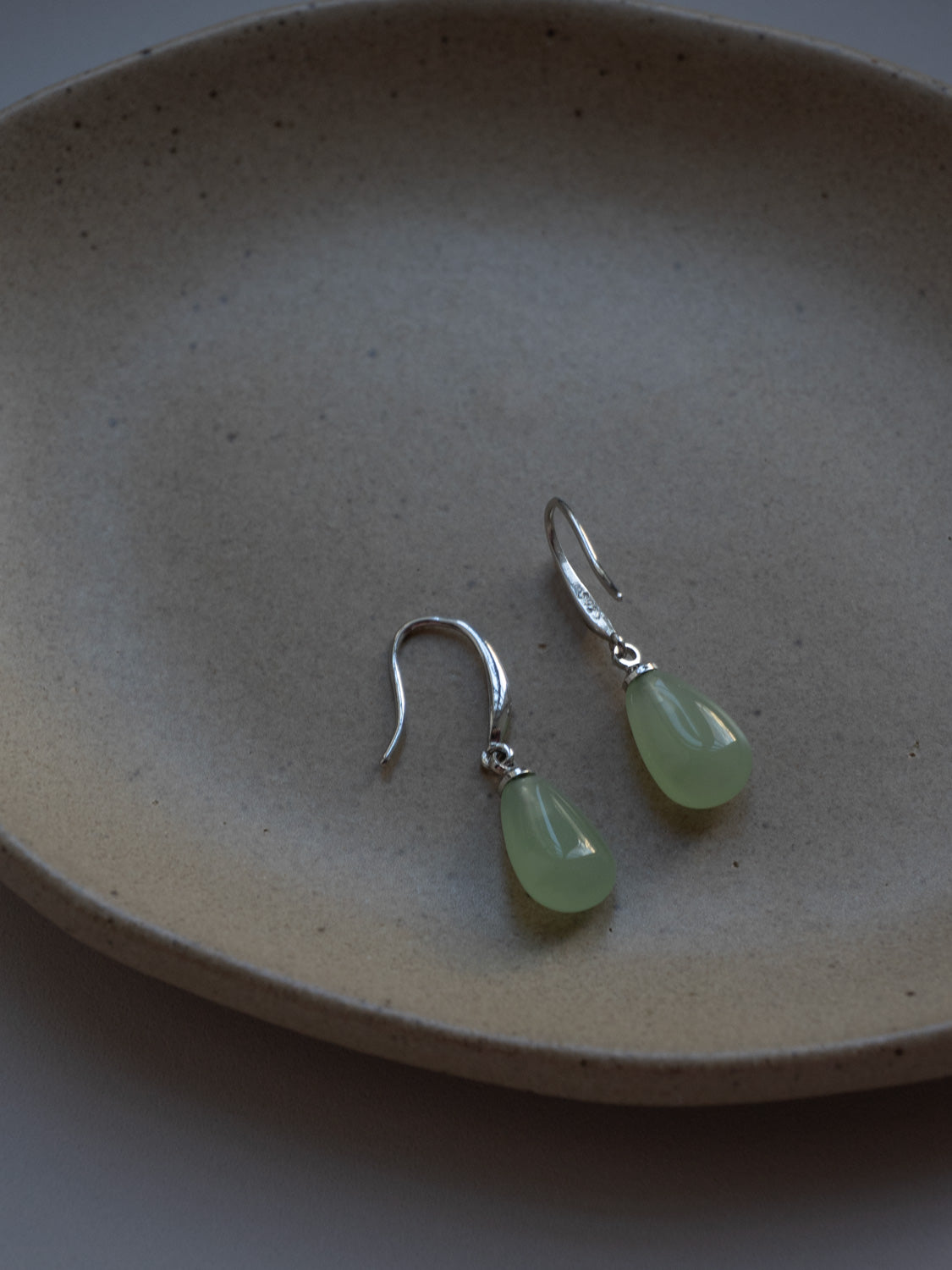 NEWElegant S925 gold-plated earrings featuring a smooth jade droplet for a refined, natural glow. Also comes in Gold.